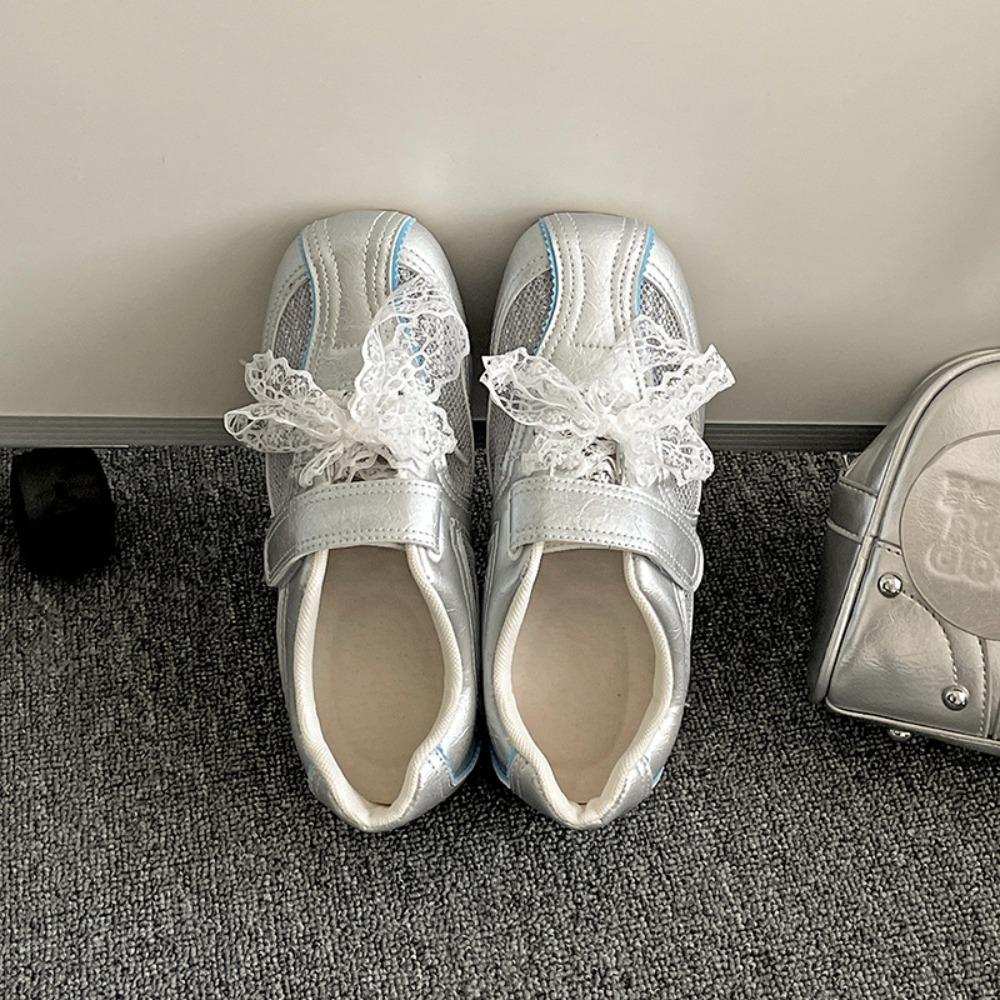 Женская повседневная обувь серебристая ретро балетки на липучке немецкие тренировочные туфли женская новая универсальная легкая обувь на мягкой подошве 40 серебряный