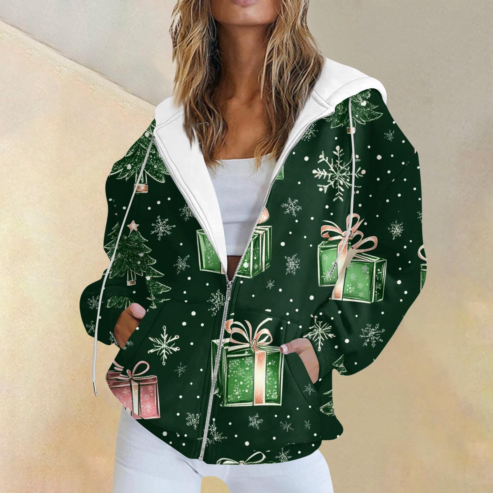 Женская повседневная рождественская печатная толстовка на осень и зиму с длинными рукавами и карманом на молнии с капюшоном S