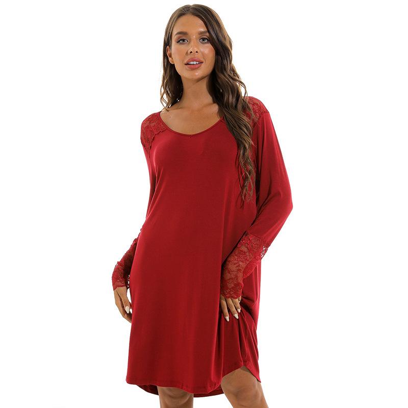 Женская повседневная свободная однотонная вязаная хлопковая стильная домашняя ночная рубашка с длинными рукавами, можно носить кружевные большие пижамы для женщин