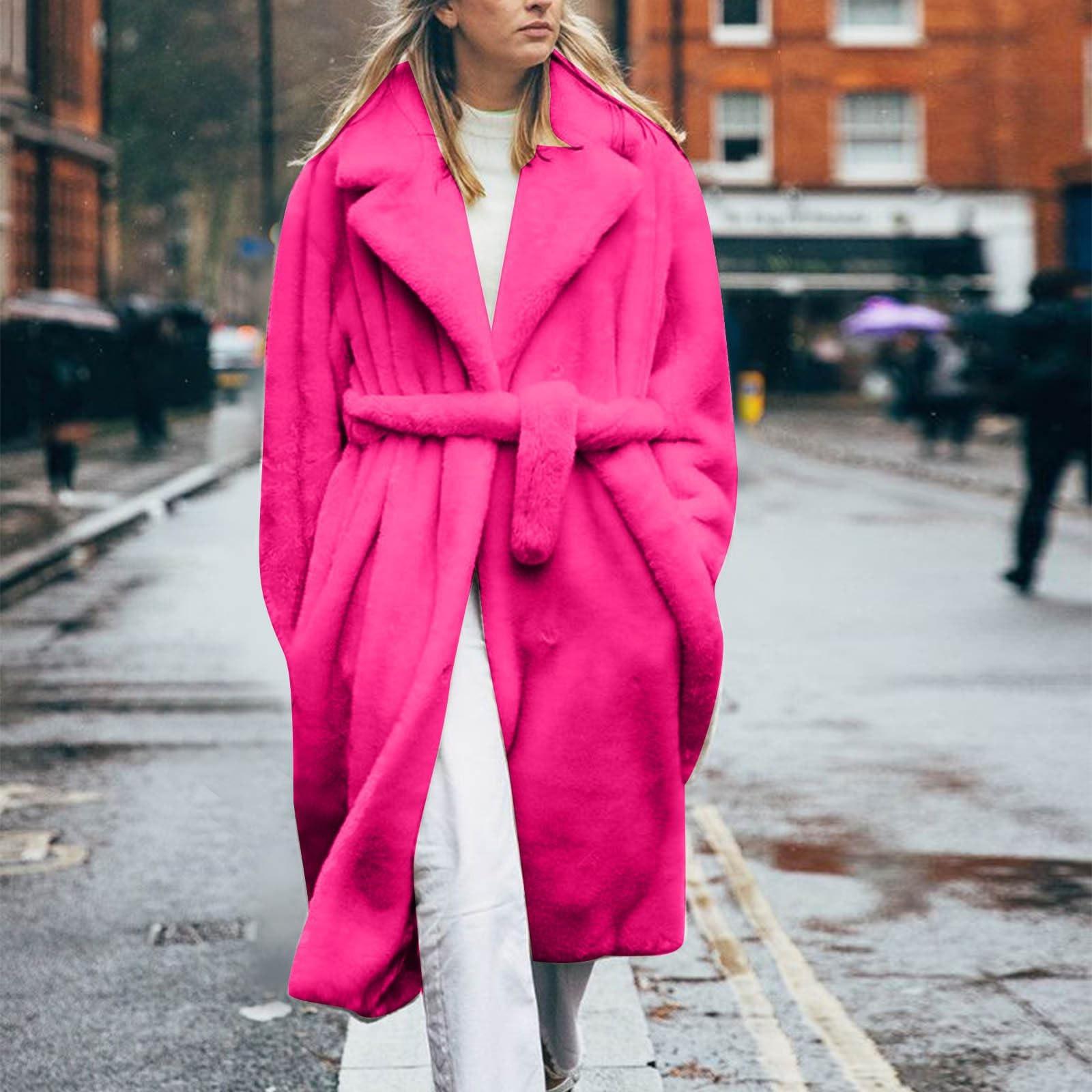 Женская повседневная свободная однотонная плюшевая куртка, утолщенная длинная осенне-зимняя куртка XXXXXL горячий розовый
