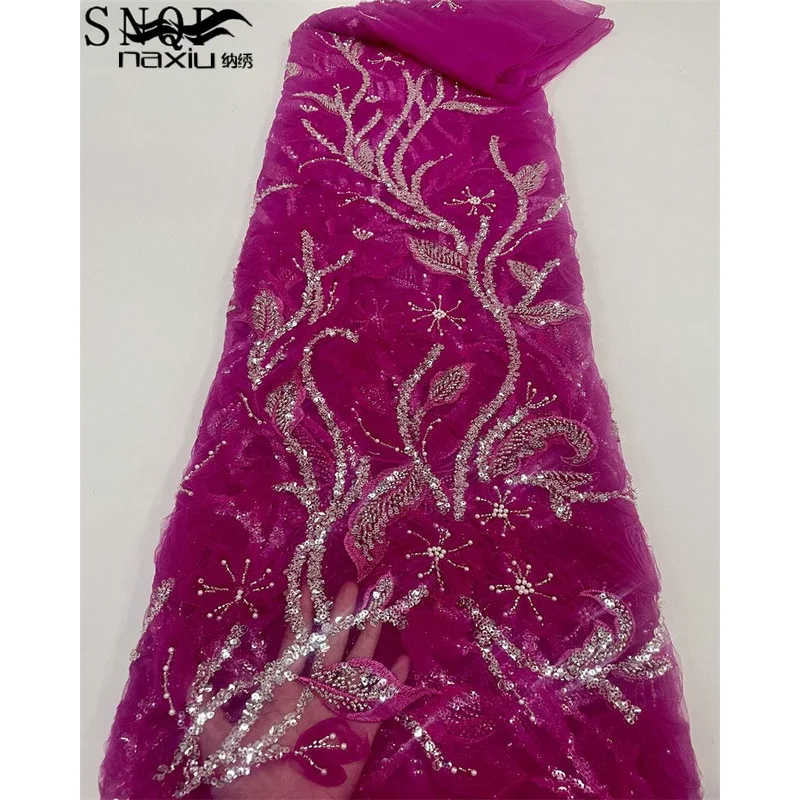 Luxury Nigerian Handmade Lace Fabric 2023 High Quality Sequins Beaded Embroidery African French Tulle Lace Fabric For Wedding