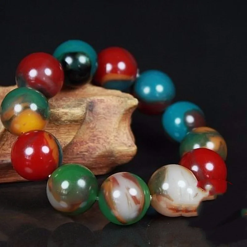 Natural Xinjiang Gobi Colorful Jade Round Beads Single Circle Hand String Men's and Women's Simple and Versatile Bracelet