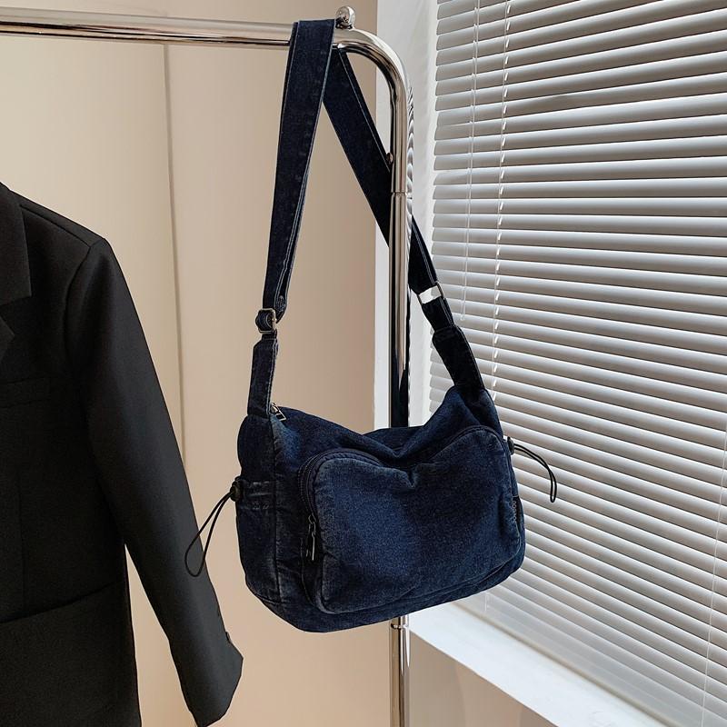 Женская повседневная сумка-сатчел через плечо, женская маленькая джинсовая винтажная сумка-мессенджер, регулируемый ремешок, повседневная сумка-тоут, многофункциональная шикарная сумка-хобо темно-синий