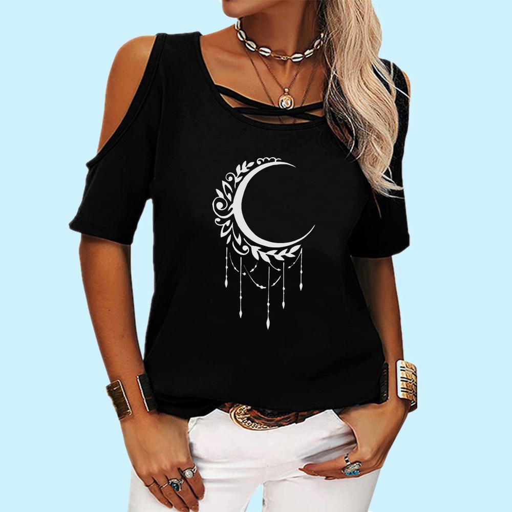 Женская повседневная футболка с круглым воротником, летняя и осенняя модная футболка с коротким рукавом и принтом, женская футболка с открытыми плечами S розовый