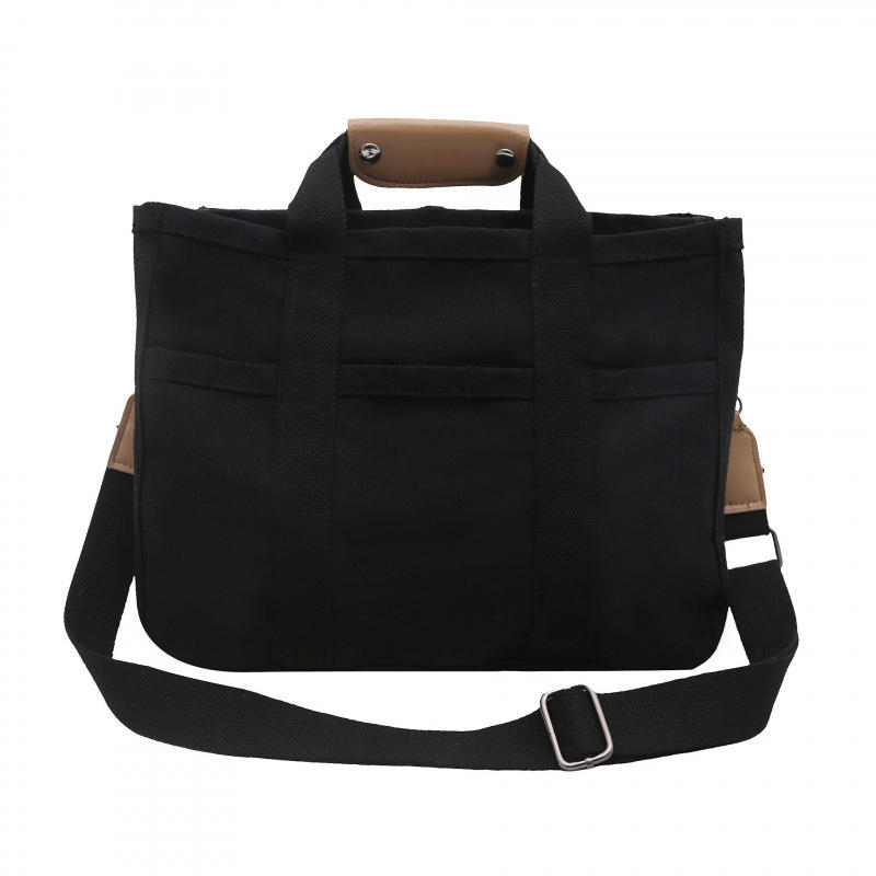 Женская повседневная холщовая сумка с несколькими карманами, большая вместительная сумка-тоут, регулируемый плечевой ремень, повседневная сумка-шоппер через плечо для женщин A чёрный