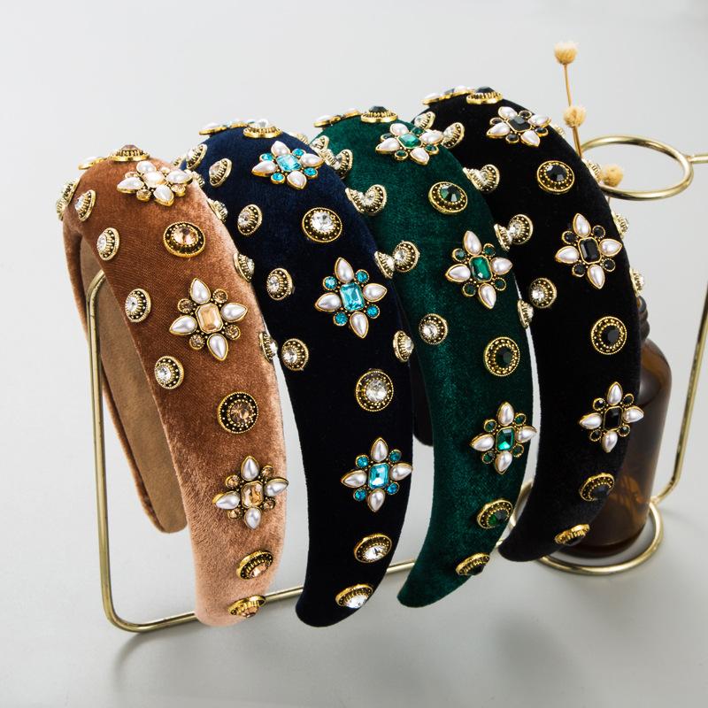 Женская повязка для волос, винтажная золотая бархатная повязка для волос со стразами, темперамент, широкий край, повязка для волос в стиле барокко