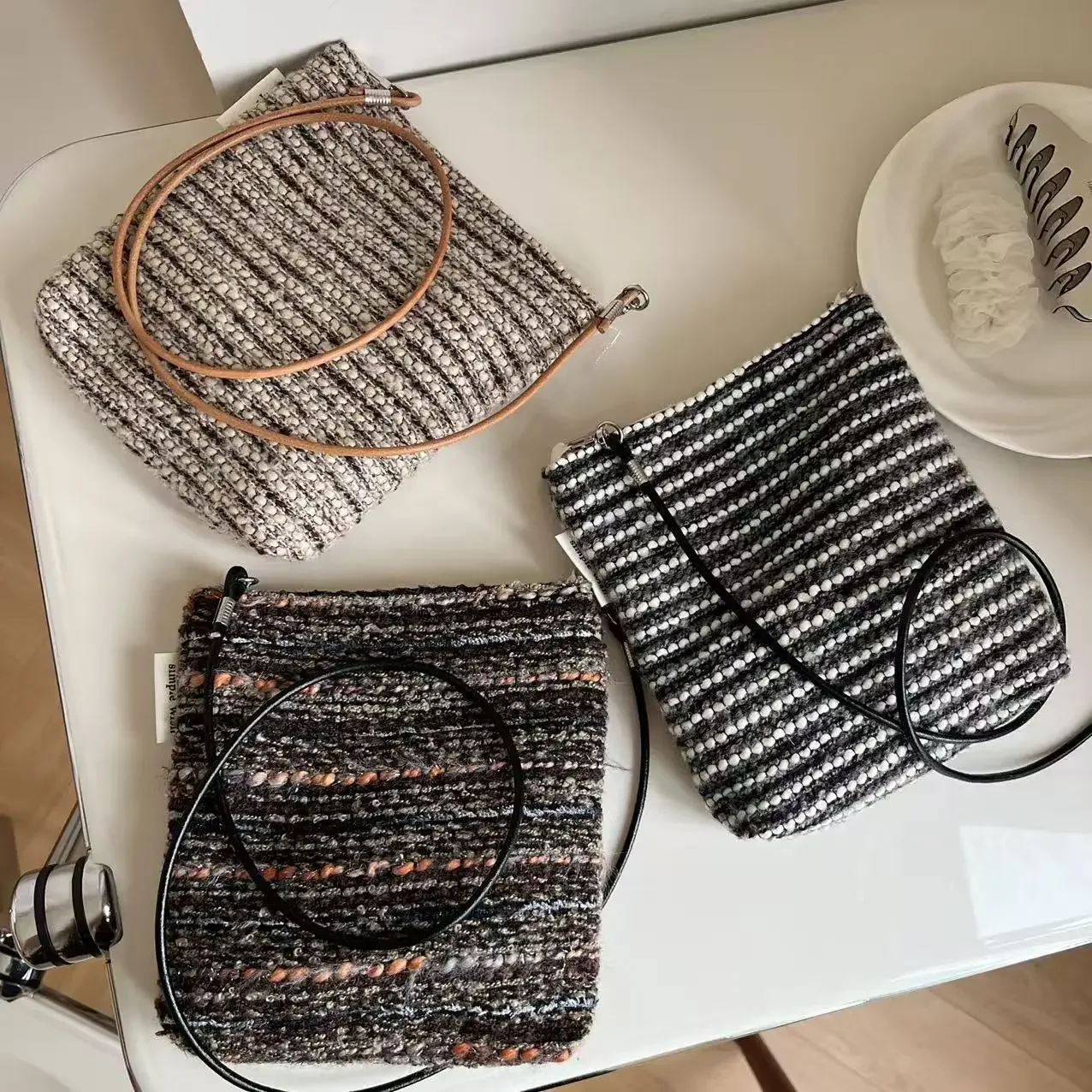 Женская полосатая сумка через плечо в стиле ретро, новая осенне-зимняя маленькая вязаная сумка для мобильного телефона, универсальная сумка через плечо из искусственной кожи