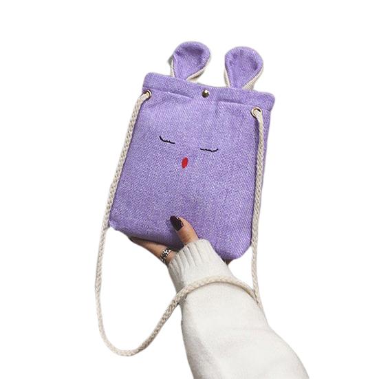 Женская портативная однотонная милая сумка через плечо с кроличьими ушками, льняная сумка