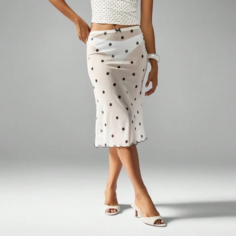 Женская прозрачная сетчатая юбка в горошек с низкой посадкой, облегающие юбки-миди, сексуальная ночная юбка черного/белого цвета