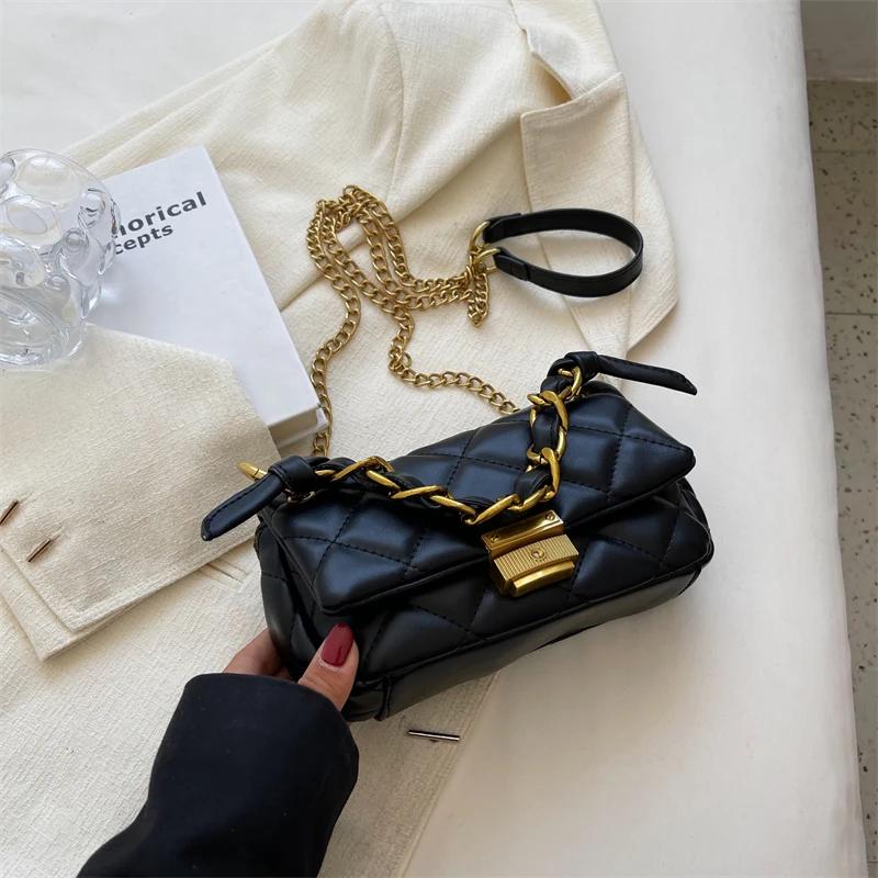 Женская простая красная клетчатая квадратная сумка с текстурой из высококачественной цепочки, популярная сумка через плечо, сумка с чувством дизайна, новая мода