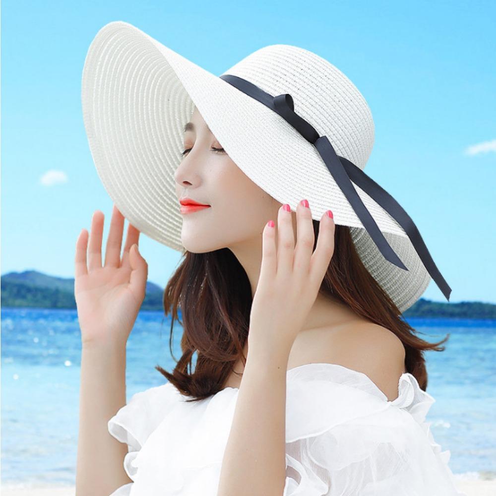 Женская простая модная однотонная соломенная шляпа с плоскими полями, подходит для поездок на природу, отдыха на морском пляже, летний подарок для защиты от солнца one size