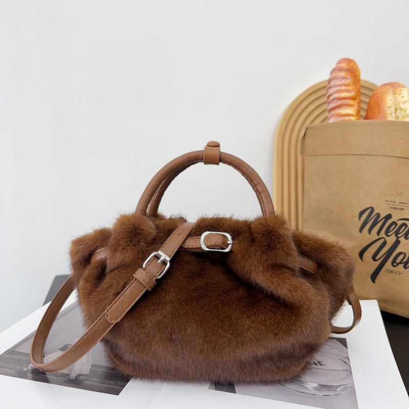 Женская пушистая сумка в ретро-стиле, модная сумка кроссбоди большой вместимости, съемный плечевой ремень, сумка в форме крыла CLE 20x10x23cm кофейный