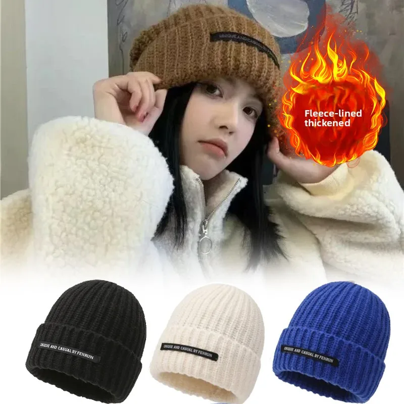 Женская пушистая шапка, зимняя однотонная милая утолщенная модная шапка с ушками, свободная милая вязаная шапка для осеннего тепла
