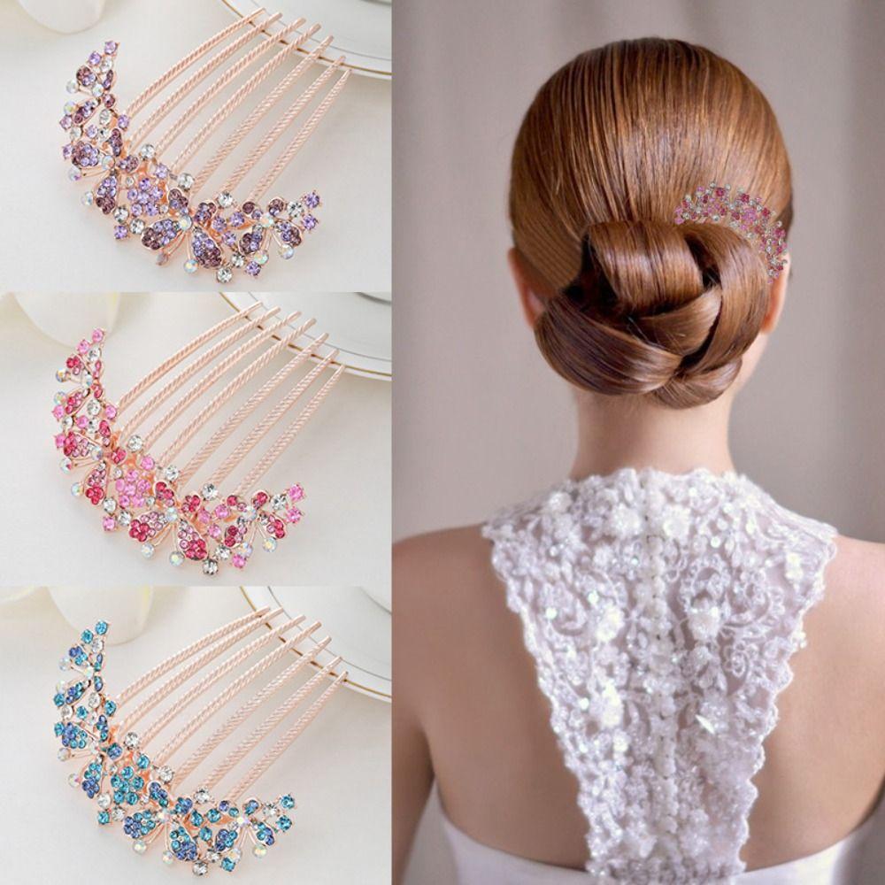 Женская расческа для волос с цветком, элегантные хрустальные украшения для волос, новая заколка для волос со стразами