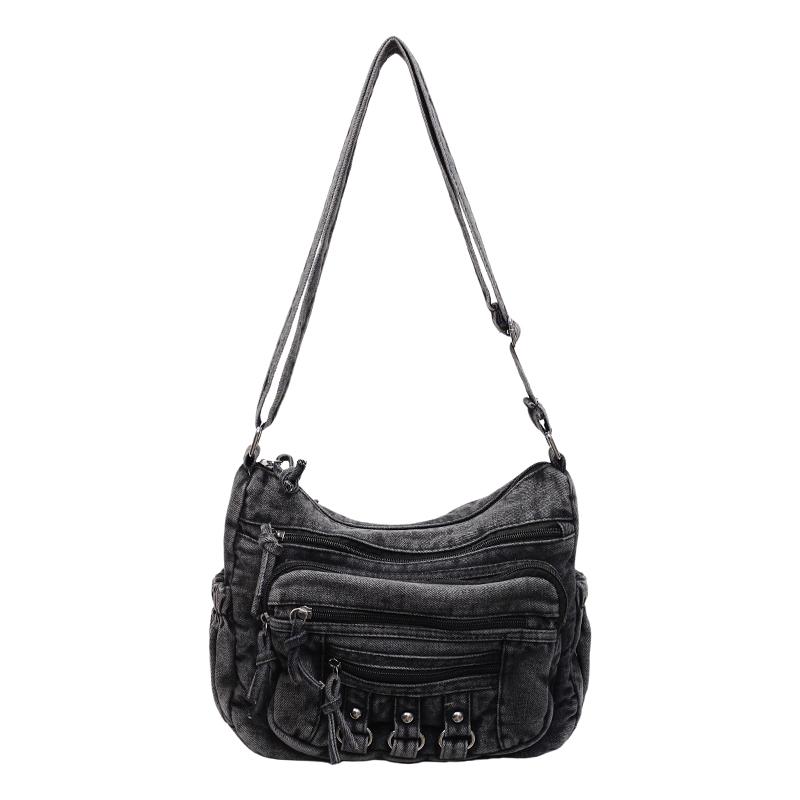 Женская ретро-сумка из денима для женщин среднего и пожилого возраста, сумка для мам с несколькими карманами, сумка через плечо для поездок на работу чёрный
