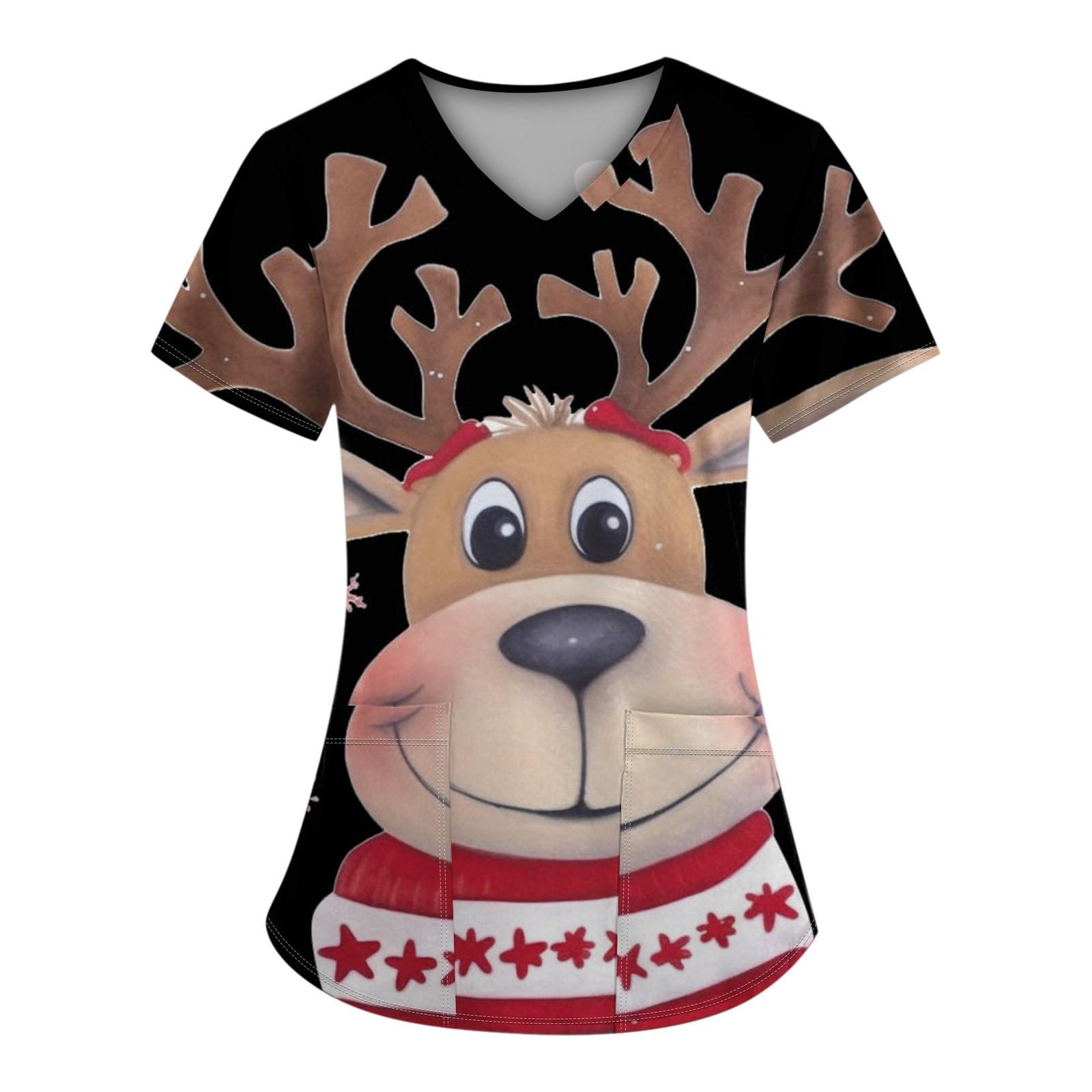 Женская рождественская печатная рабочая униформа с V-образным вырезом и карманом, защитная униформа XXL