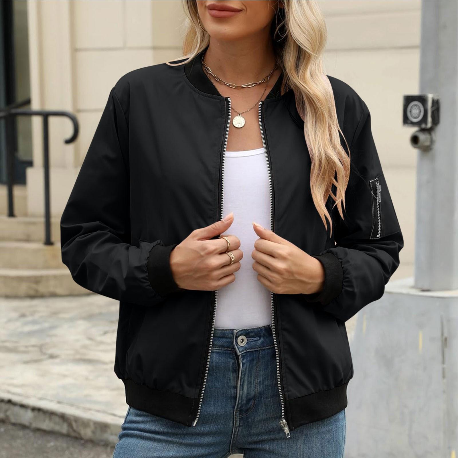 Женская свободная удобная повседневная модная однотонная куртка с длинными рукавами и карманом на молнии XXL чёрный