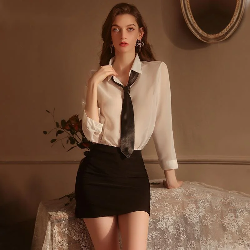 Женская сексуальная прозрачная рубашка с длинным рукавом и юбка на ягодицах, милая популярная одежда для работы, костюм для косплея, модель ...