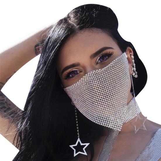 Женская сексуальная сетчатая маска для лица и рта со стразами, вуаль-яшмак для вечеринки в ночном клубе серебряный