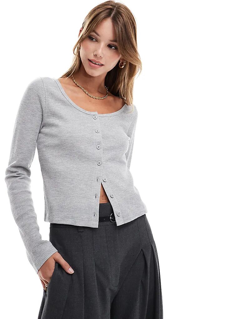 Кардиган с длинными рукавами и круглым вырезом в сером меланжевом цвете ASOS DESIGN
