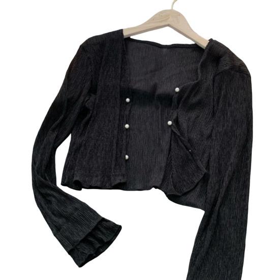 Женская сетчатая прозрачная куртка от солнца с длинным рукавом и застежкой на пуговицы, солнцезащитные рубашки с защитой от ультрафиолета, короткий топ-шаль, летняя пляжная накидка L чёрный