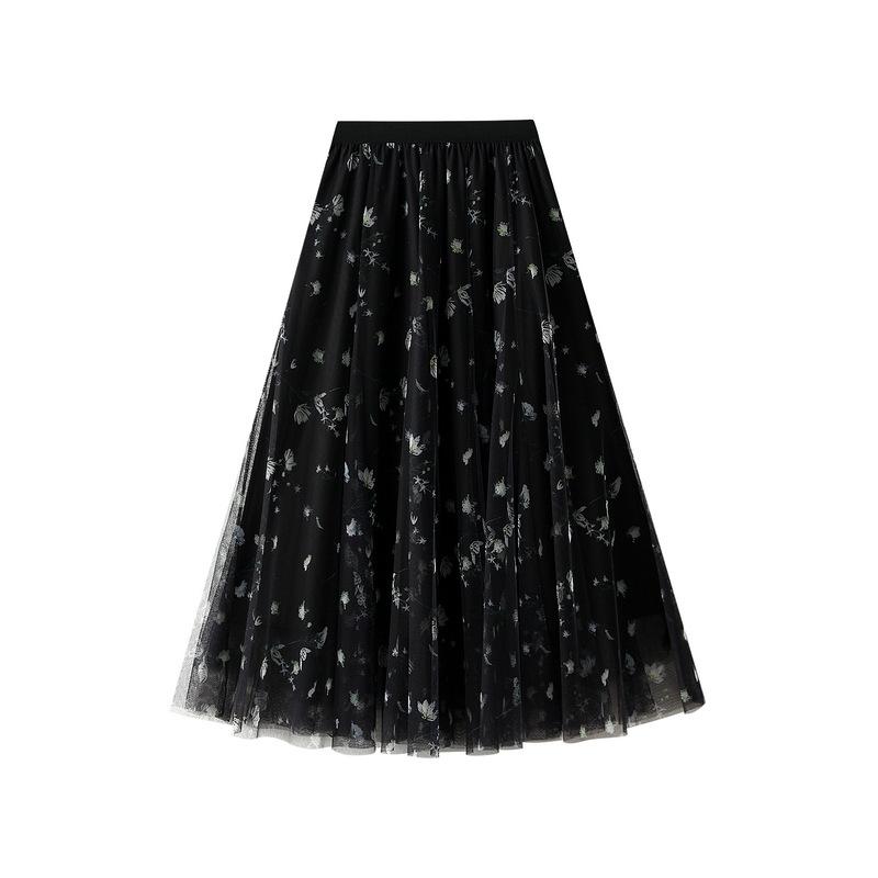 Женская сетчатая юбка с цветочным принтом, новинка весны, длинная юбка А-силуэта с принтом One size чёрный