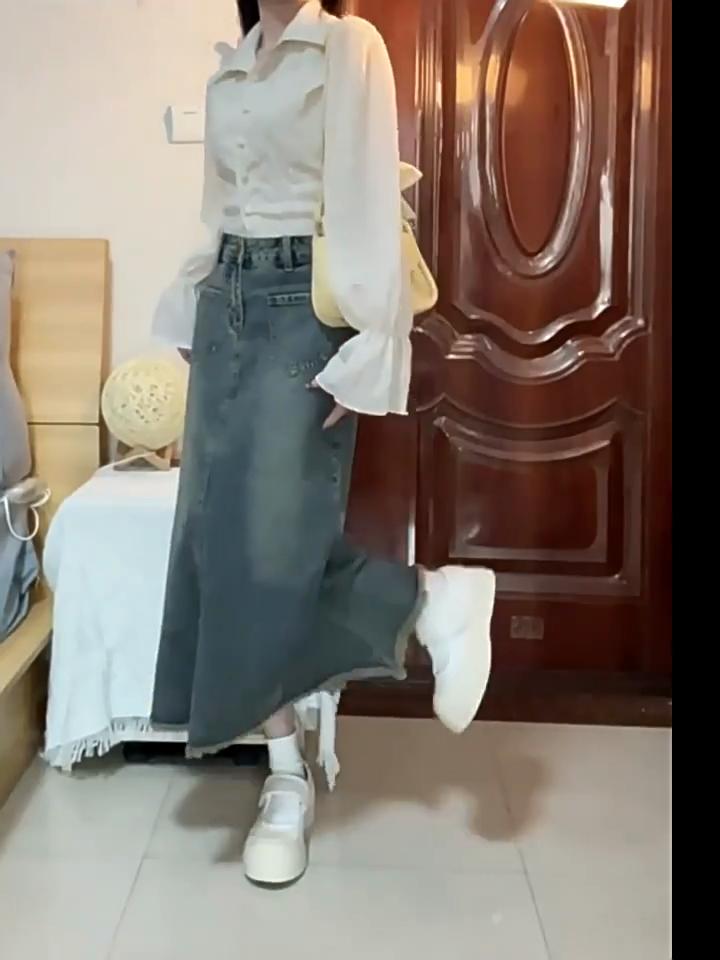 Женская синяя джинсовая юбка в стиле ретро с высокой талией, тонкая юбка трапециевидной формы, длинные джинсы, женская новая корейская версия