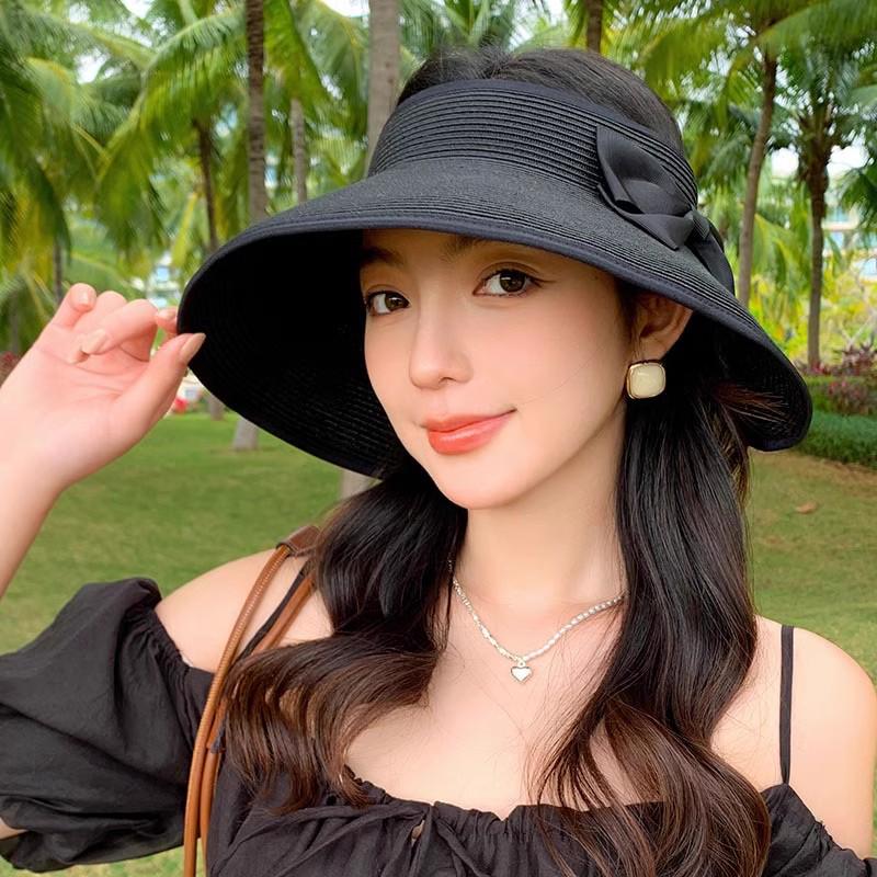Женская складная шляпа от солнца с открытым верхом, защита от УФ-лучей и широкими полями, летняя соломенная шляпа с бантом One Size