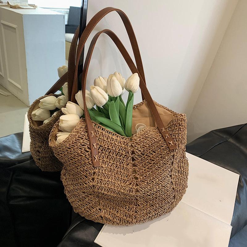 Женская соломенная плетеная сумка через плечо, однотонная летняя плетеная сумка для женщин, дорожные сумки ручной работы, сумки под мышками 26x1x35cm хаки