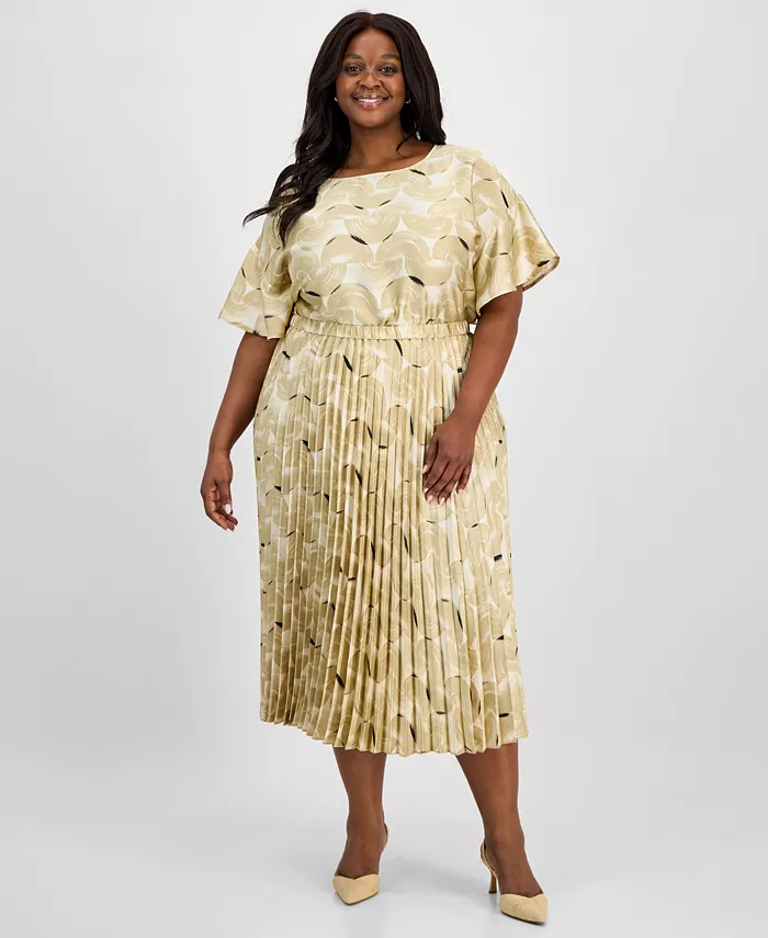 Юбка миди больших размеров со складками и застежкой Anne Klein, коричневый