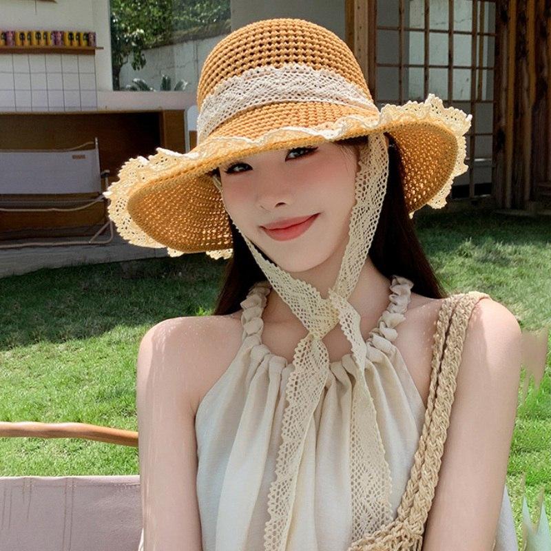 Женская соломенная шляпа на шнуровке, широкополая пляжная шляпа, складная солнцезащитная шляпа хаки