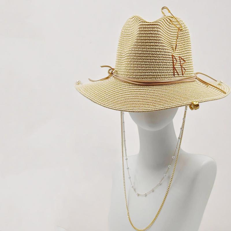 Женская соломенная шляпа от солнца, новый стиль 2024 года, в сочетании с бикини, летняя шляпа в стиле джаз-хип-хоп, модная шляпа в стиле панк, пляжная шляпа, церковная шляпа 56-58cm