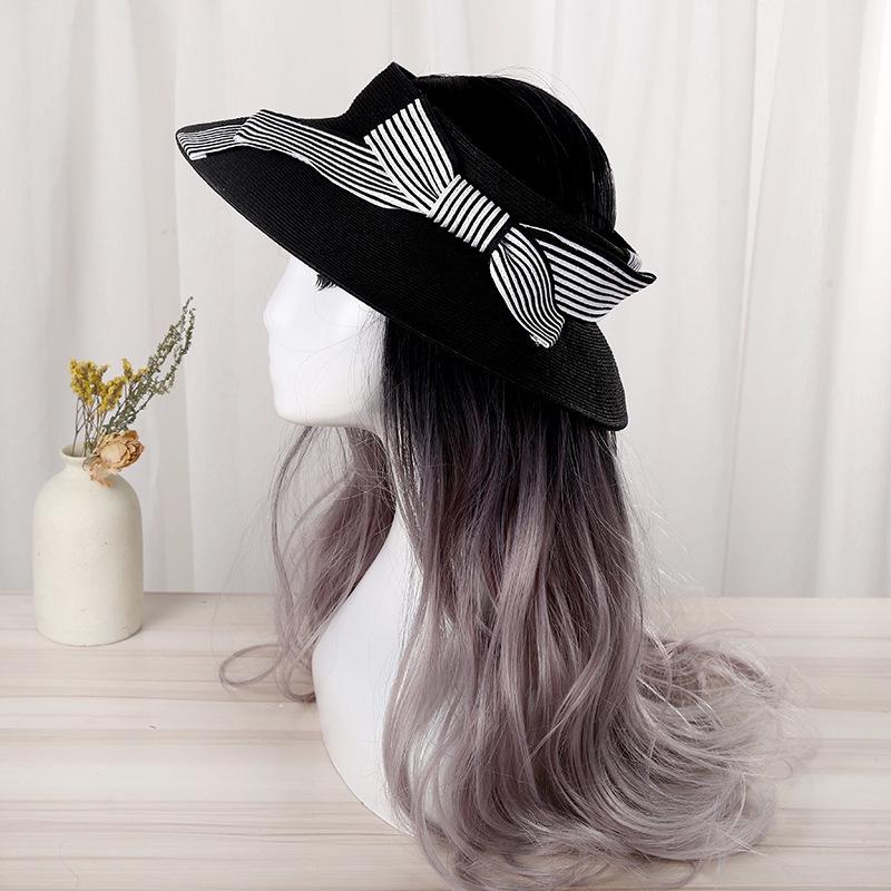 Женская соломенная шляпа от солнца с широкими полями в корейском стиле с бантом - Летняя защита от УФ-лучей Adjustable чёрный