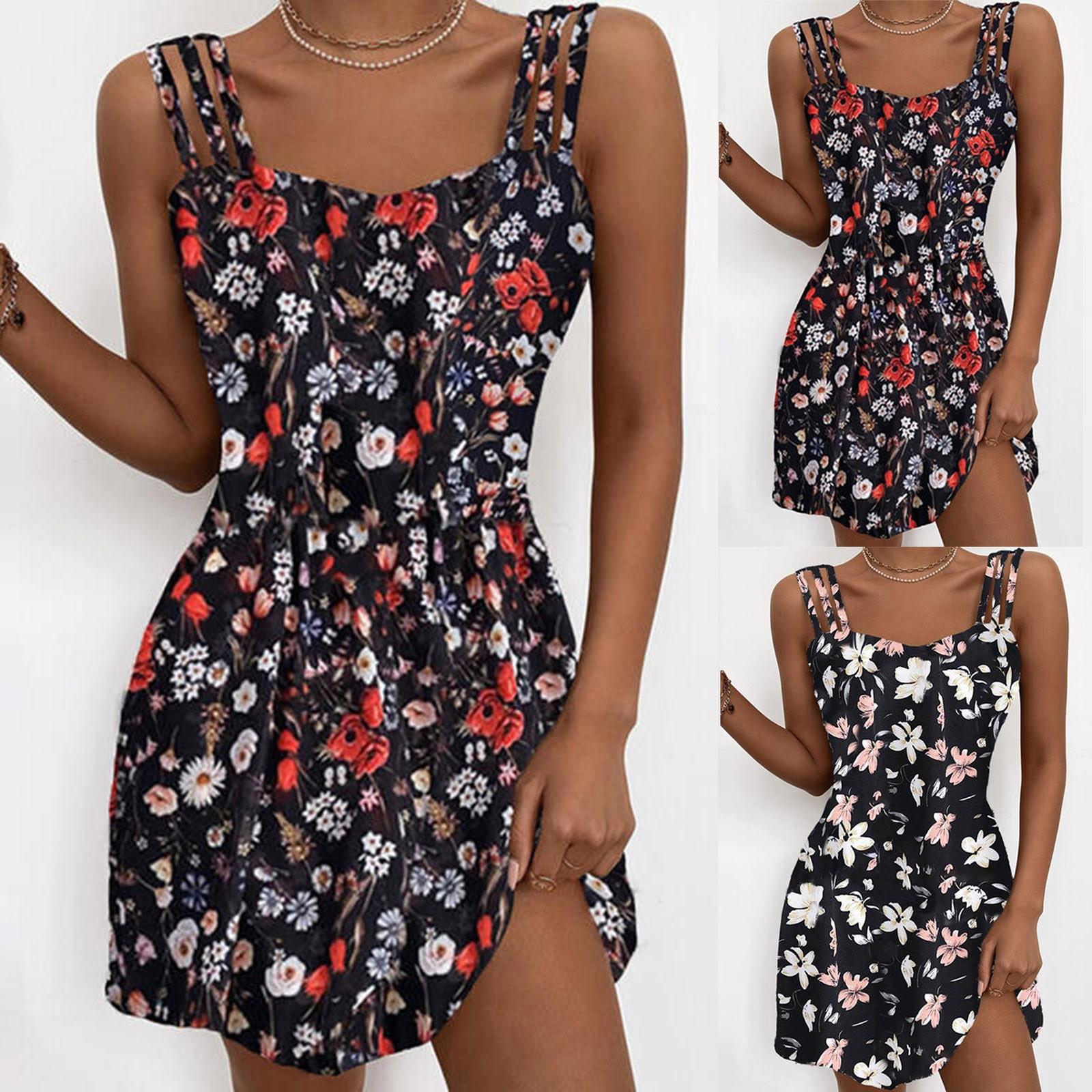 Женская средняя юбка Тонкая подтяжка Тип Темперамент Цветочная печать Платье