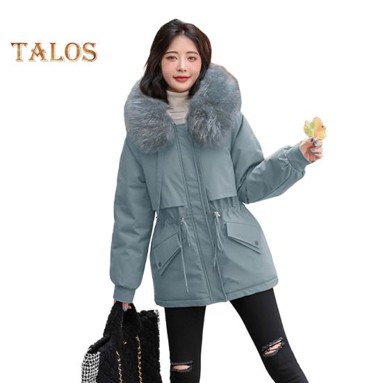 Женская стеганая куртка, утолщенное плюшевое пальто с подкладкой и кулиской на талии, зимняя теплая стеганая куртка с капюшоном из искусственного меха для работы, уличная одежда L светло-синий