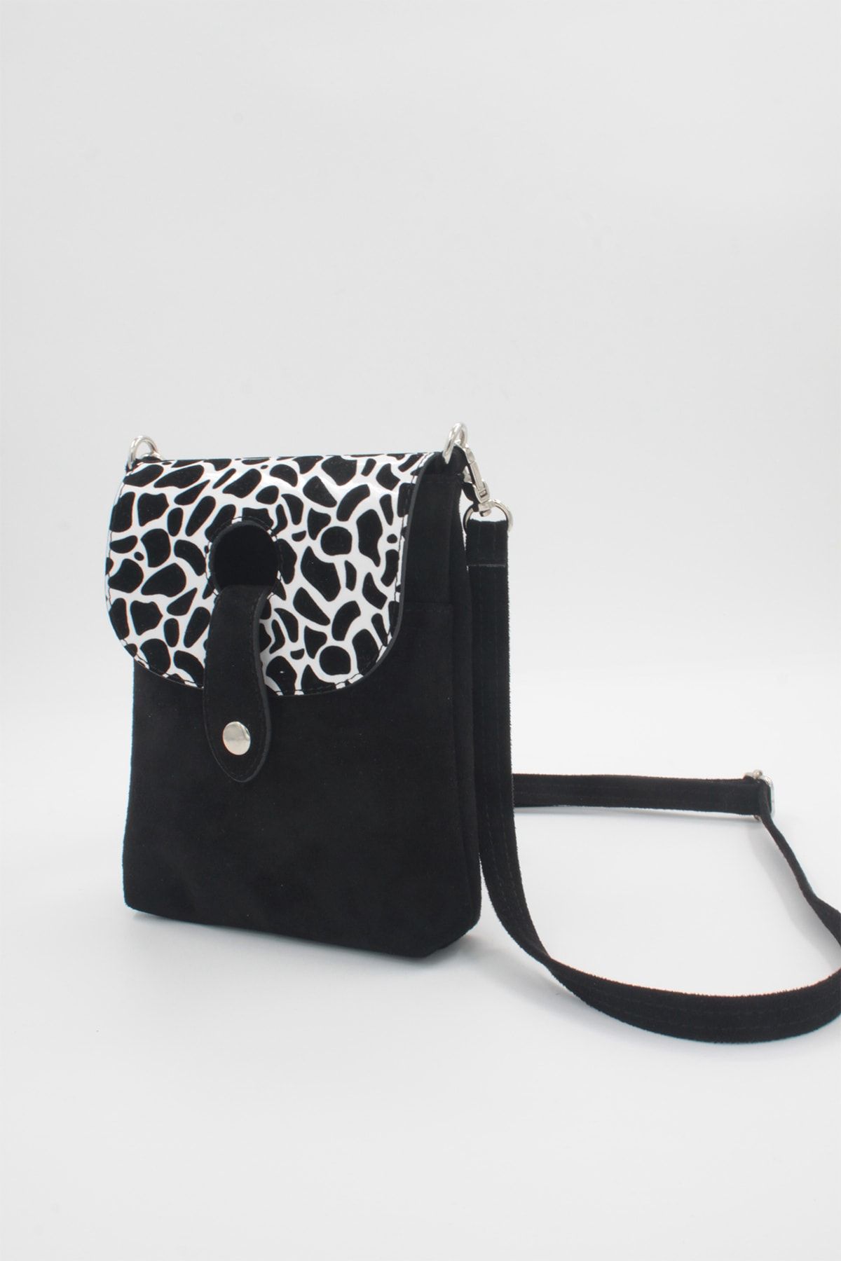 Женская стильная и полезная сумка через плечо Черная замшевая сумка с перекрестным ремешком для телефона с далматинским узором
