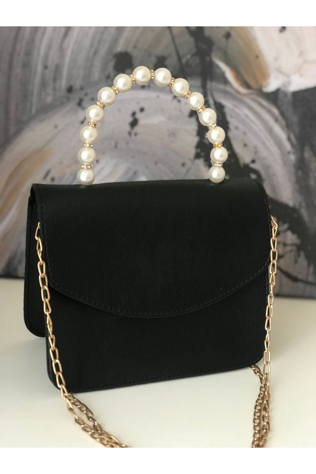 Женская стильная и практичная сумка через плечо Женская сумка через плечо и на руку с черным жемчугом и цепочкой