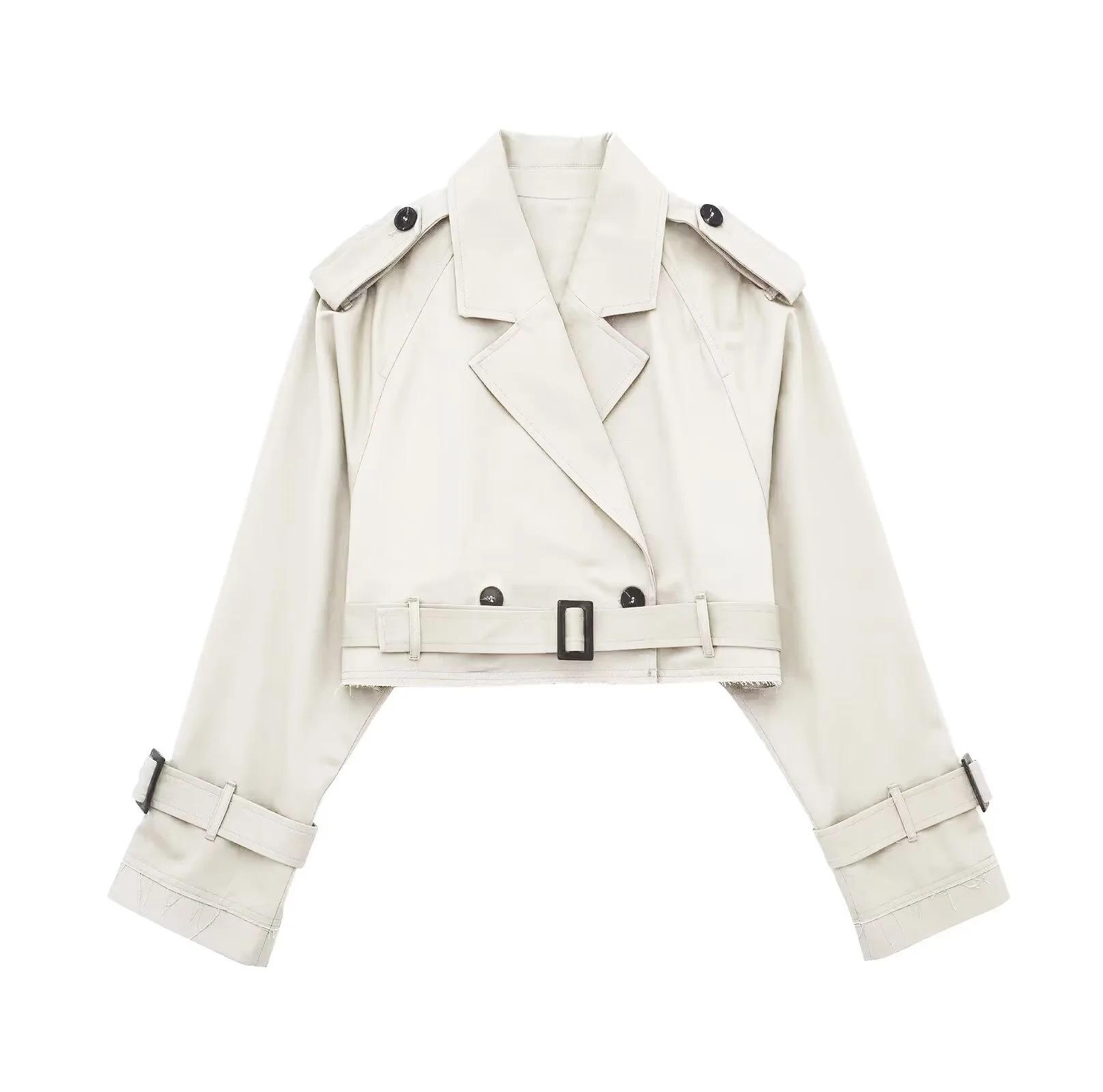 Женская стильная тонкая куртка весна-осень крутая двубортная куртка для девочек топ офисная простая повседневная короткая куртка S абрикосовый/белый