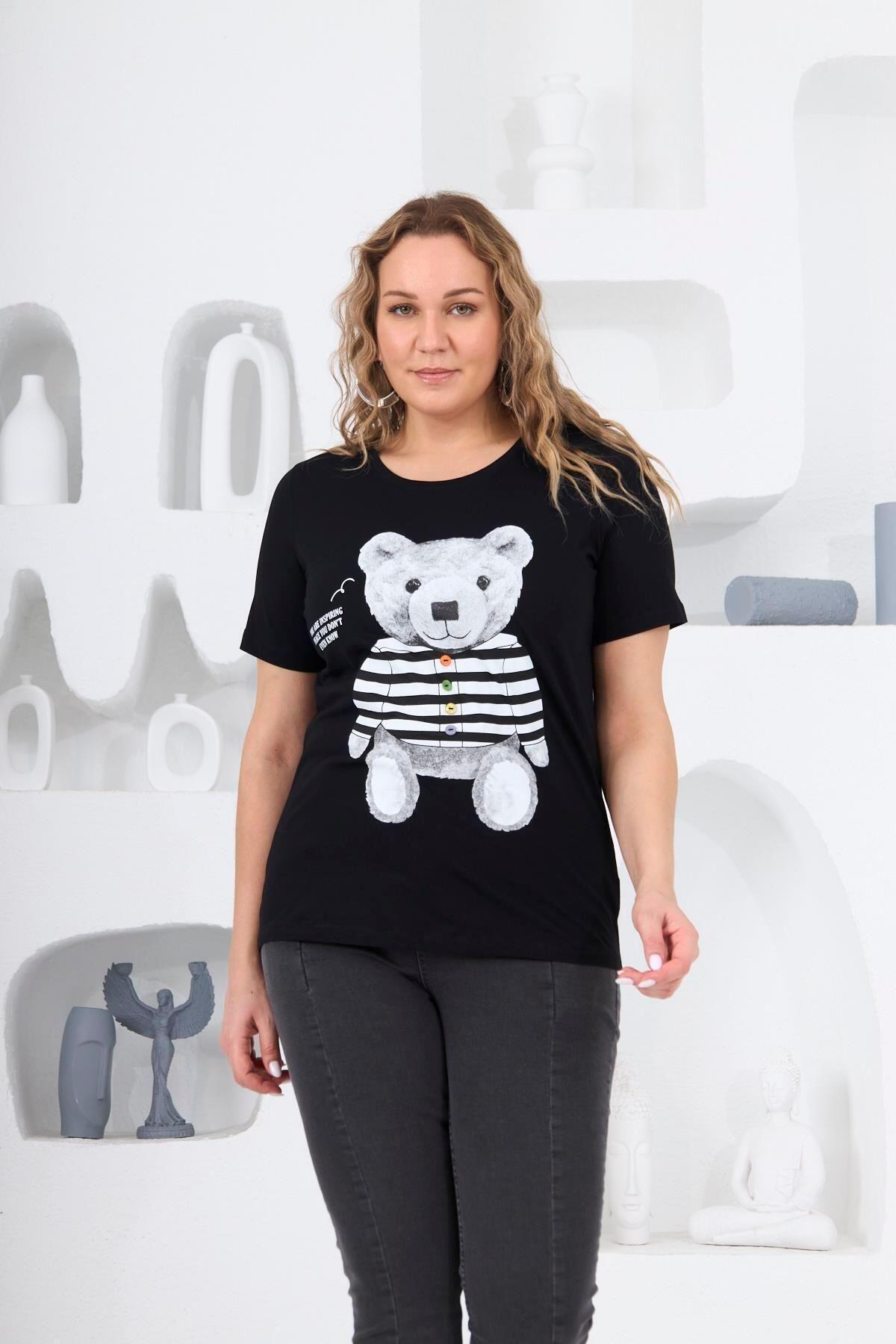 Женская стильная футболка большого размера с принтом плюшевого мишки, черная футболка больших размеров 2XL