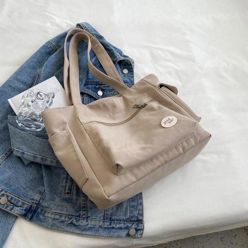 Женская сумка, большая вместительная сумка для покупок, сумка на плечо с несколькими внешними карманами, студенческая повседневная застежка-молния хаки