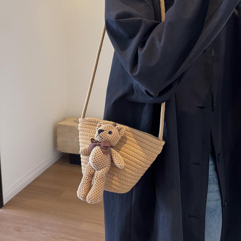 Женская сумка-ведро Летняя одноплечевая сумка Милая сумочка-кроссбоди с маленьким медведем для девочек хаки