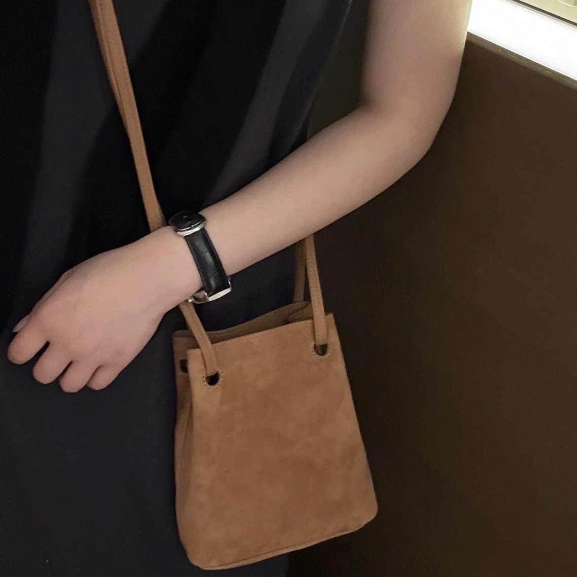 Женская сумка-ведро через плечо, осень-зима 2022, новая матовая замшевая сумка на шнурке, модная универсальная маленькая сумка на одно плечо