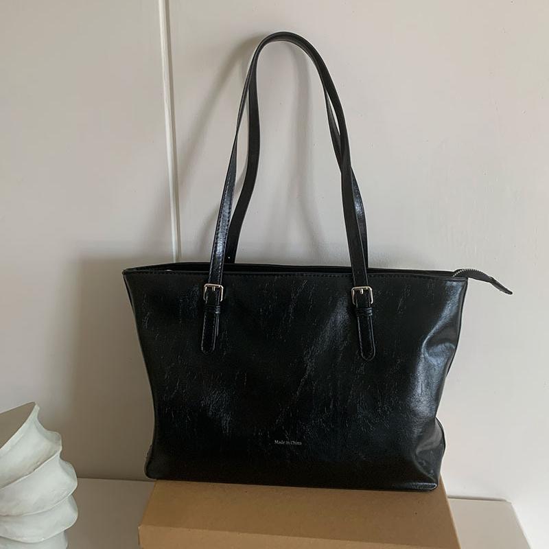Женская сумка в стиле ретро, большая вместительная сумка для поездок на работу, универсальная сумка-тоут, сумка подмышкой, простая сумка на молнии на одно плечо, большая сумка 34.5cm*10cm*25cm чёрный