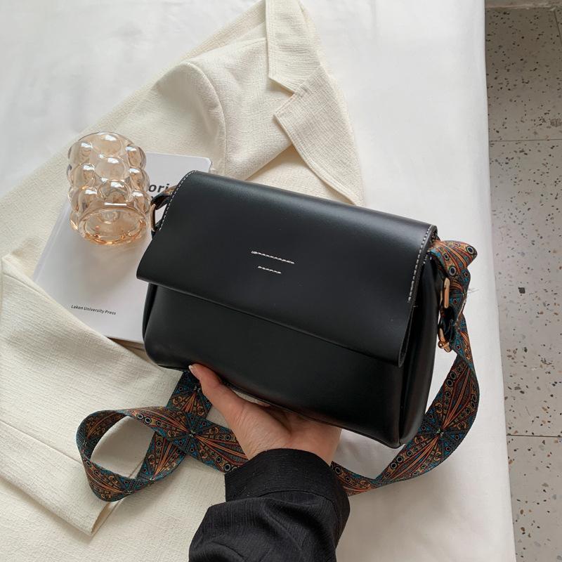 Женская сумка в стиле ретро почтальон 2024 года, новая швейная линия, осенняя сумка через плечо из искусственной кожи, простая сумка-мессенджер, маленькая квадратная сумка чёрный