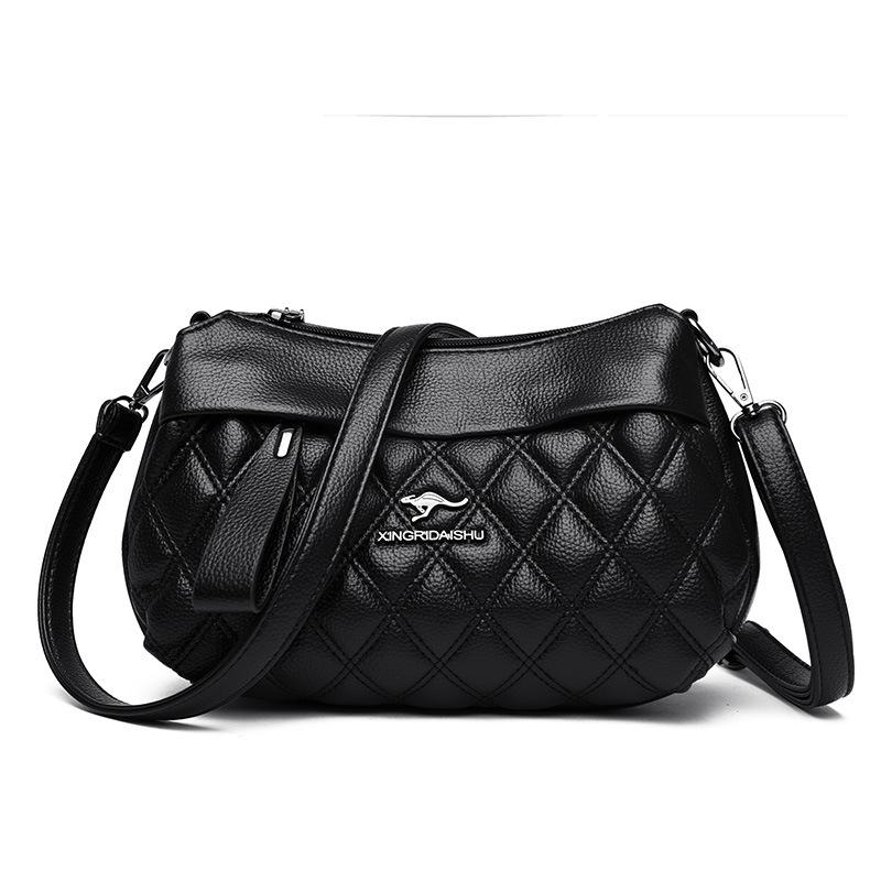 Женская сумка городская простая сумка-мессенджер многослойная мягкая кожа модная большая вместительная сумка сумка через плечо для мамы чёрный