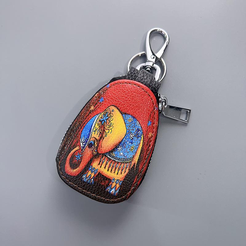 Женская сумка для ключей из натуральной кожи в стиле ретро-этнического стиля 2023 года с подвеской на молнии и цветным принтом