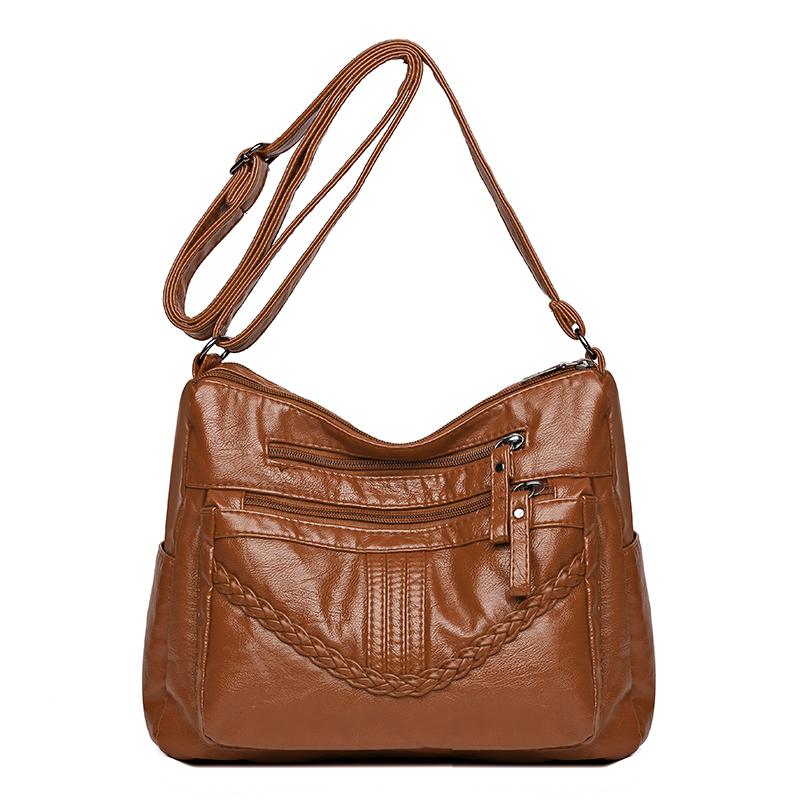 Женская сумка для мобильного телефона, большая вместимость, ПУ, многослойная сумка через плечо для мам коричневый