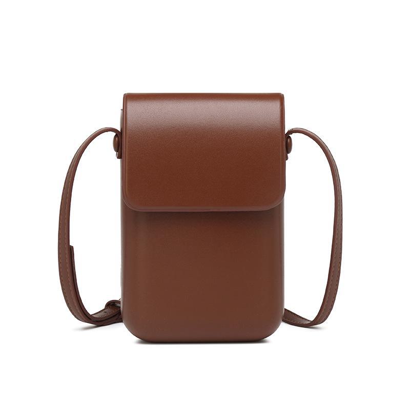 Женская сумка для мобильного телефона через плечо 2024 года — простая, модная, легкая, универсальная сумка в корейском стиле мини 12x18cm коричневый