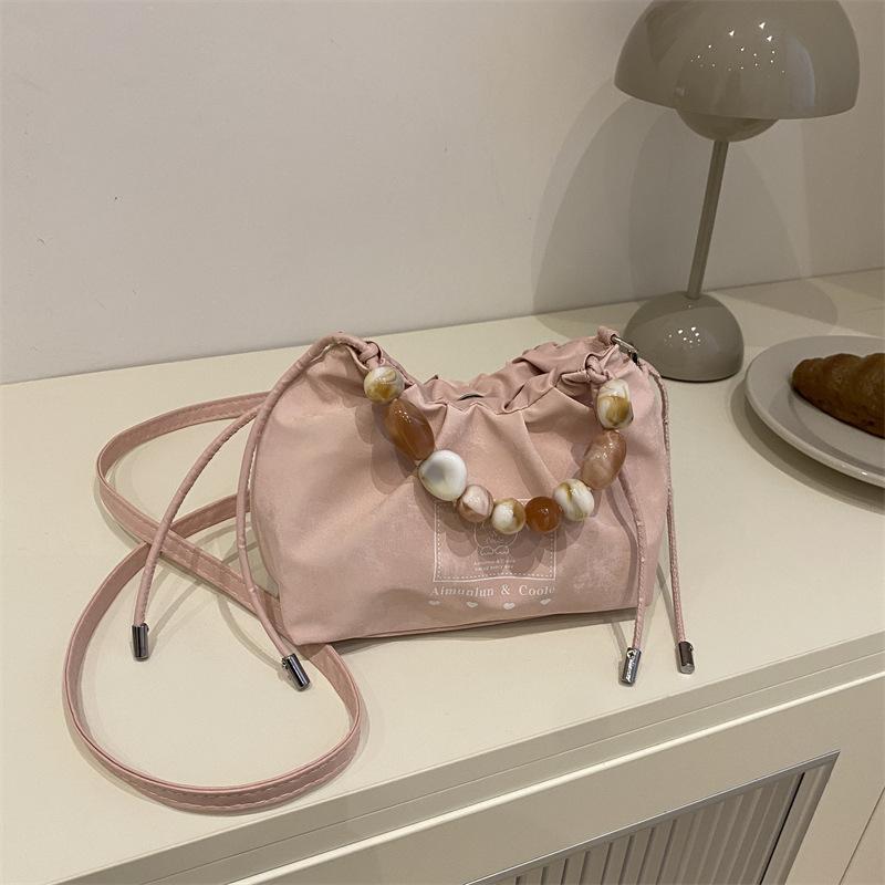 Женская сумка сумка из бисера новая универсальная простая нишевая дорожная на плечо через плечо сумка-ведро розовый