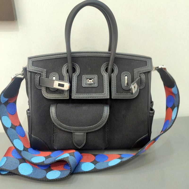 Женская сумка из кожи с холщовой модной платиновой сумкой, сумка-вкладыш, ремешок на плечо в горошек, ручная сумка с диагональным поперечным креплением на одно плечо 25x15x19cm чёрный